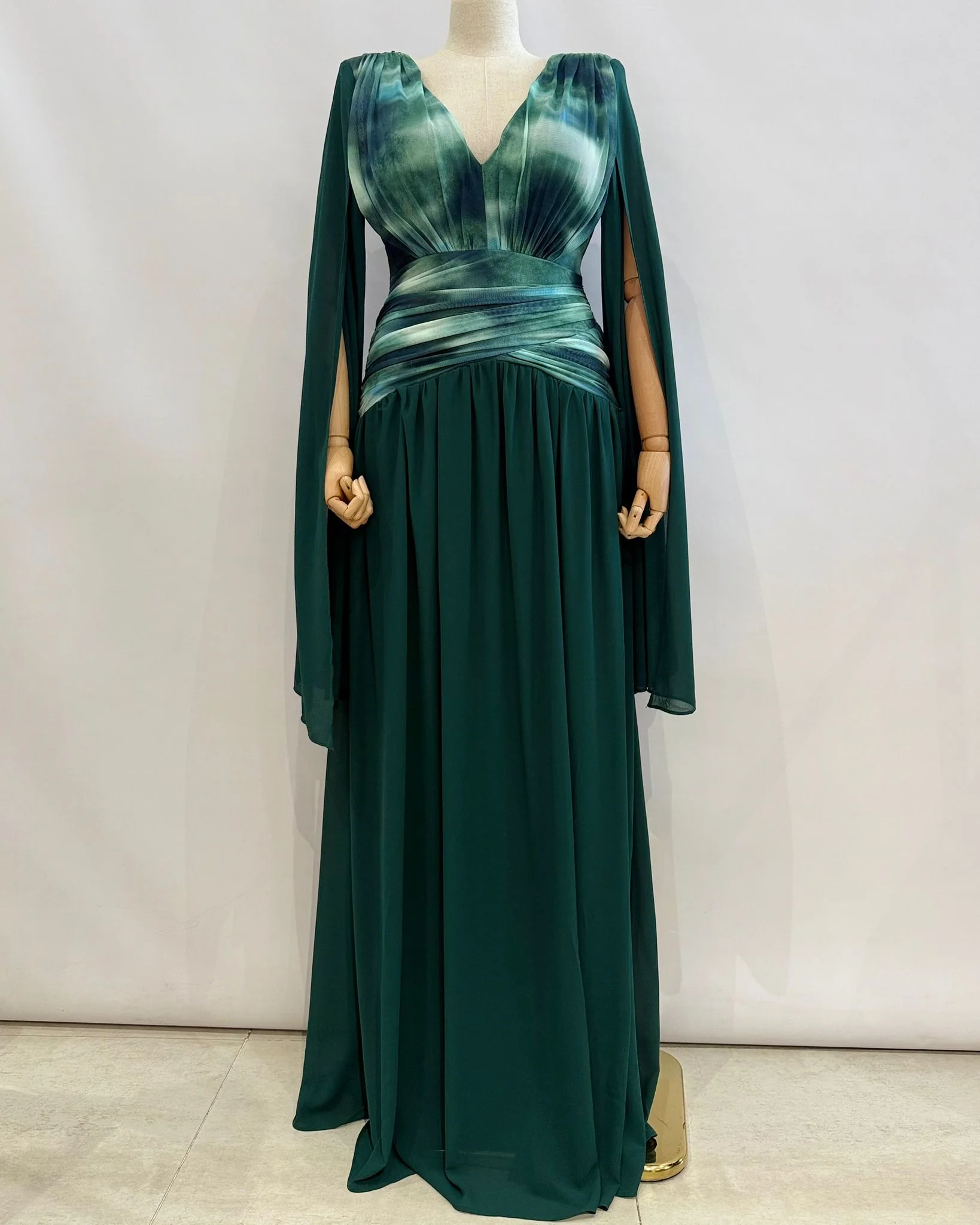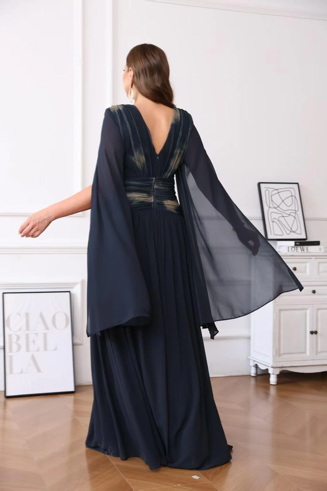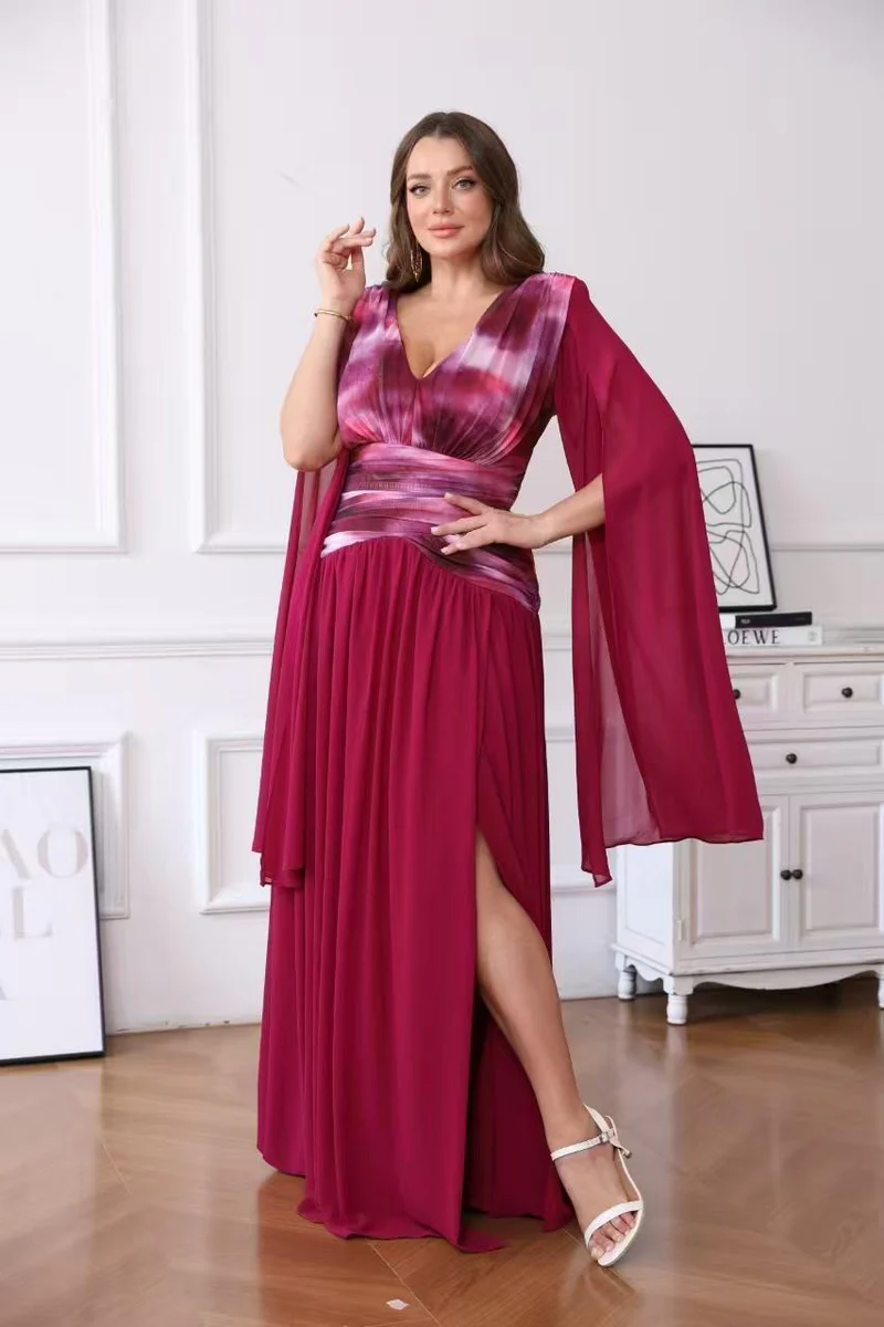 El vestido Helena es la nueva versión del aclamado modelo Zafira, ahora con mangas capa que aportan movimiento y sofisticación, convirtiéndolo en una elección perfecta para invitadas curvy que buscan estilo y comodidad en sus looks de tallas grandes.