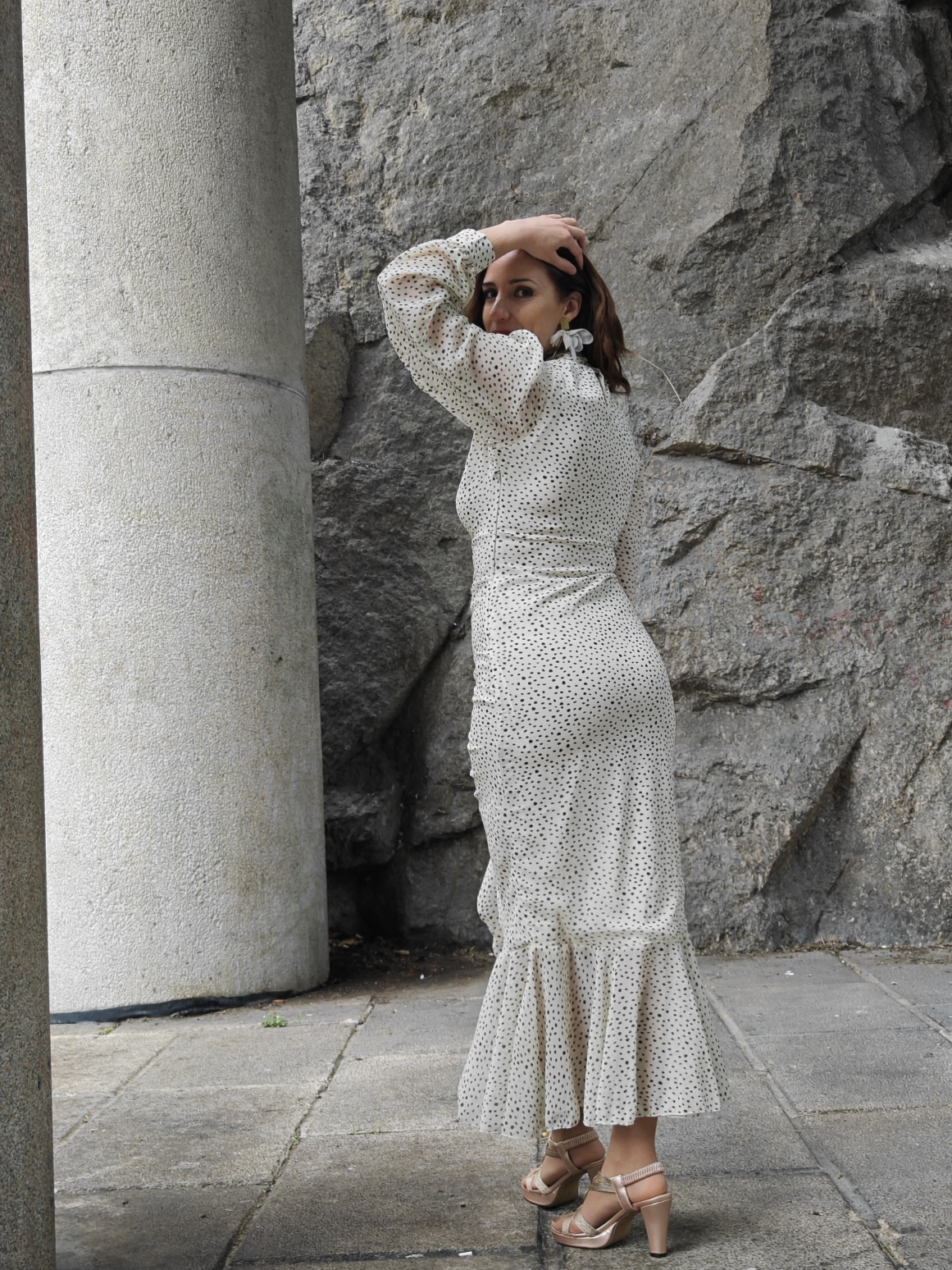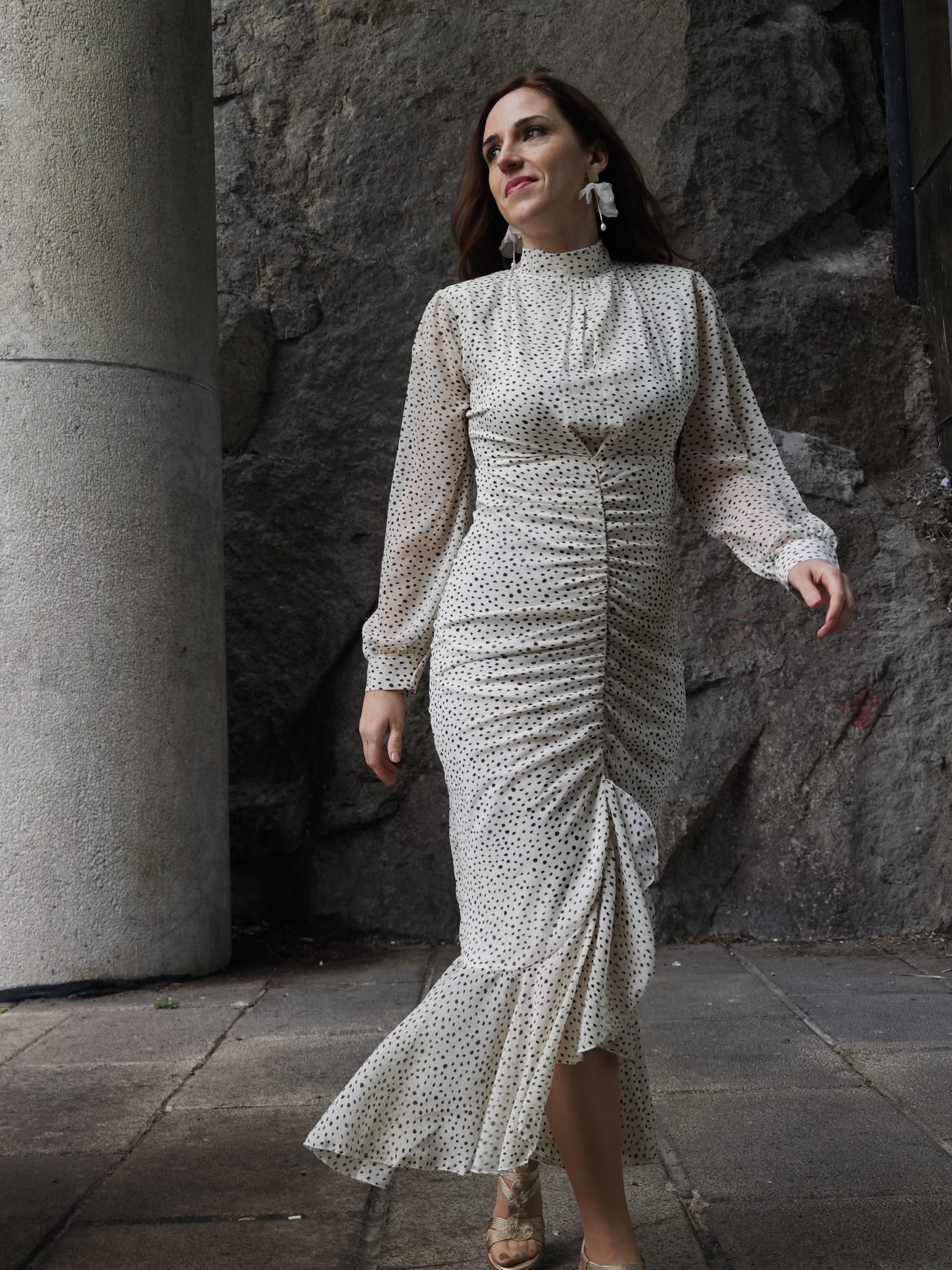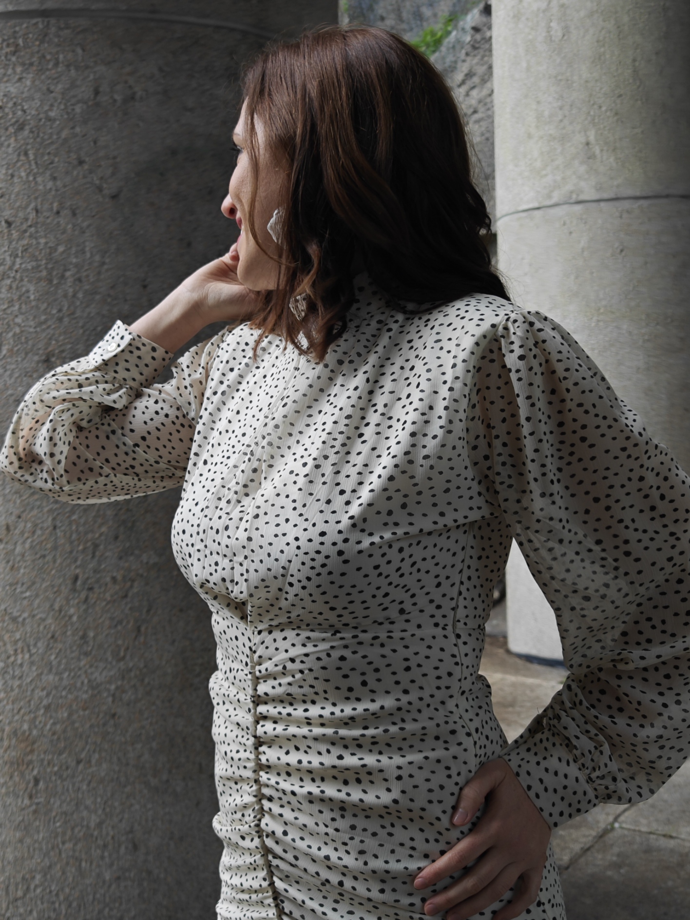 Déjate enamorar por Brisa, un vestido midi de gasa con lunares, diseñado para realzar tu silueta con su elegante fruncido en la cintura y su falda con volante. 🌿 Su tejido ligero y completamente forrado te garantiza comodidad y fluidez en cada paso.